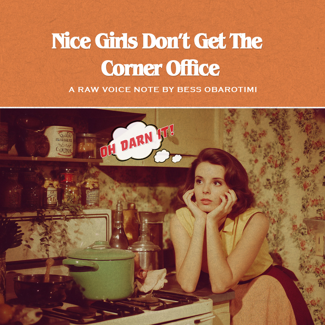 Nice Girls Don’t Get the Corner Office is a powerful voice note and transcript by Bess Obarotimi that challenges the pressure to fit into other people’s expectations. In this intimate, spoken piece, Bess shares a deeply personal story of frustration, boundaries, and the liberation that comes when you stop caring what people think and start standing in your truth.